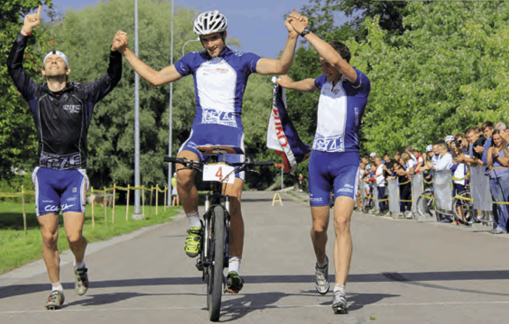 Podobně jako u lyžařského orienťáku, tak i první orientační cyklozávod u nás proběhl již v dávné historii. Nicméně rozvoj brzdil mimo jiné také nedostatek kvalitních kol do terénu, a tak výrazný vzestup přišel až v devadesátých letech. V roce 1993 proběhlo první neoficiální MČR – sprint i klasickou trať vyhrál Jaroslav Rygl (na fotce uprostřed), který se výrazně zapsal do historie českého MTBO. Závěrem téhož roku již bylo MTBO oficiálně přijato mezi ostatní orientační sporty a v roce 1994 vzniklo reprezentační družstvo. Jaroslav Rygl v něm nechyběl a podílel se na úspěšných výpravách do Francie, která patřila vedle ČR k nejrychleji se rozvíjejícím MTBO zemím. V roce 1998 se stal celkovým vítězem hodnocení Evropského poháru a byl také u první stříbrné medaile české štafety z prvního MS MTBO v roce 2002 ve Francii.