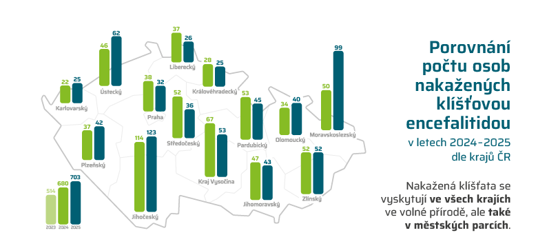 Česká republika patří dlouhodobě mezi největší ohniska klíšťové encefalitidy v Evropě. Ročně se u nás objeví 500–800 případů, což je výrazně více než ve většině zemí regionu. Orienťáci se navíc pohybují přesně v místech, kde klíšťata nejčastěji čekají — v mechu, podrostu, na okrajích lesa a v místech, kde se drží rezervoárová zvířata.
