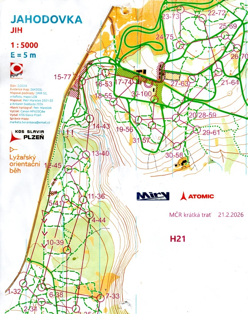 V prostoru standartních běžeckých tratí na Jahodové louce byla připravena velmi hustá síť skútrových stop. I když se jednalo o poměrně malý prostor, tak závod byl náročný jak mapově tak i fyzicky díky vlhkému sněhu, který „tahal za nohy“.