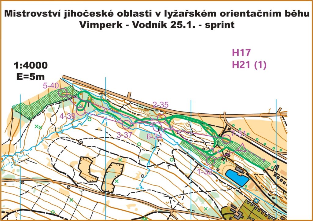 O víkendu pořádaly oddíly Ski klub Šumava Vimperk a TJ OB České Budějovice mistrovství jihočeské oblasti v lyžařském orientačním běhu. V sobotu byly na programu sprintové štafety dvojic, v neděli sprint jednotlivců. Vzhledem ke špatným sněhovým podmínkám na Churáňově se oba závody konaly v lyžařském areálu Vodník u Vimperka, kde byly k dispozici dva kilometry stop s umělým sněhem. Pro zatraktivnění a vyšší mapovou náročnost byly některé stopy jednosměrné a delší kategorie měly otočku mapy. Nejkratší postupy se tak často délkou výrazně lišily od vzdušné vzdálenosti. Přestože se jednalo o regionální závody, tak se na start v sobotu postavilo 18 štafet a v nedělním sprintu 66 závodníků. Kompletní výsledky jsou informačním systému ORIS.